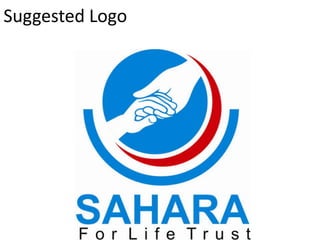 This document outlines marketing materials for a public relations campaign including a suggested logo, press ad, posters, flyers, brochures, standups, streamers, bus ads, notepads, web banners, visiting cards, mugs, t-shirts, caps and bags. The materials are meant to promote the SAHARA For Life Trust.