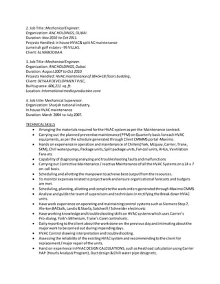 N. SaiBudeen is a mechanical engineer with over 14 years of experience in HVAC operations, maintenance, design, and project execution. He has extensive experience maintaining HVAC systems for commercial buildings in Dubai. SaiBudeen holds a diploma in mechanical engineering and a bachelor's degree in business administration. He is proficient in HVAC software like HAP and knowledgeable in international codes and standards like ASHRAE.