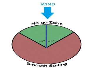 This document provides an overview of sailing, including why people enjoy sailing, typical sailing lessons, common sailing terms, parts of sailboats, and basic sailing maneuvers. Sailing can be relaxing or competitive, is accessible for all experience and skill levels, and can be enjoyed alone or with others. A typical sailing lesson covers boat rigging, points of sail, maneuvers like tacking and jibing, and safety procedures. The document also includes specifications for two sailboat models - the Flying Scot and Gulfstar 39 sailboat.
