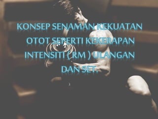 Dokumen ini membincangkan tentang kekuatan otot dan cara melatihnya melalui teknik isometrik, isotonik, dan isokinetik, serta kepentingannya dalam meningkatkan saiz dan kekuatan otot. Terdapat juga informasi mengenai kekerapan, intensiti, dan tempoh latihan yang sesuai untuk mencapai kecergasan yang diingini. Ujian kekuatan otot juga diterangkan, termasuk prosedur dan tahap-tahap ujian yang boleh dilakukan.