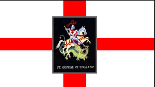 Saint George is the patron saint of England, though he was not English. He is also the patron saint of several other places and professions. According to legend, Saint George traveled to Libya and saved a princess from being sacrificed to a dragon by slaying the dragon. He struck it first with his spear, which broke against the dragon's scales, then used his sword to kill it under its wing where there were no scales. Saint George is popularly associated with bravery for defeating the dragon.