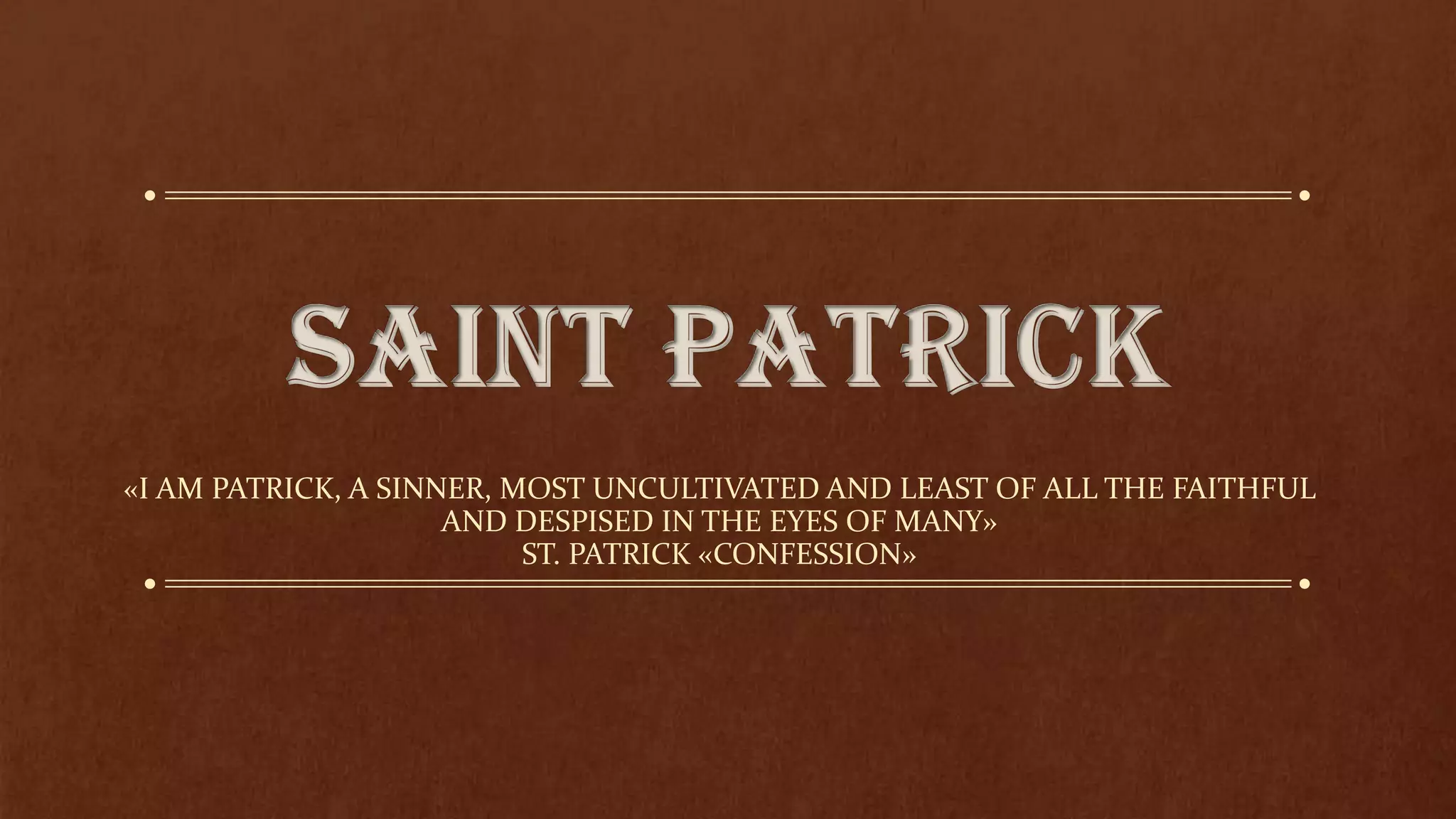 St. Patrick was a 5th century Romano-British Christian missionary and bishop in Ireland. According to his written works Confessio and Epistola ad Coroticum, he was born in Britain and captured by Irish pirates at age 16, enslaved for six years in Ireland. During this time he turned to prayer and God, and had visions calling him to return to Ireland and preach Christianity. He escaped, became a priest, and returned to Ireland to convert the Irish for 40 years, establishing the Catholic Church before dying on March 17, 461.