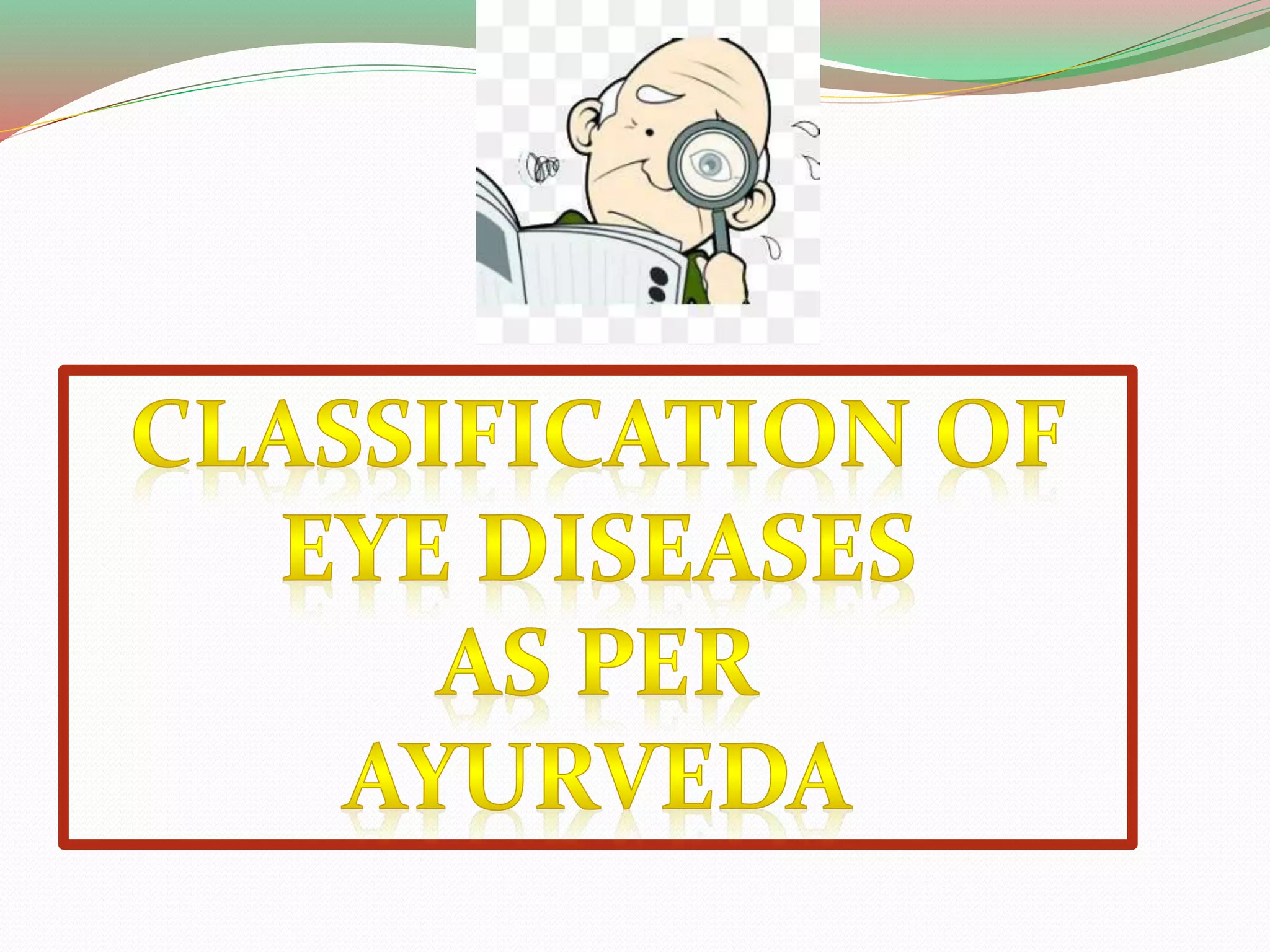 This document classifies and categorizes 76 different eye diseases based on their predominant dosha, location affected, and treatment approach. The diseases are broken down into several groups:
