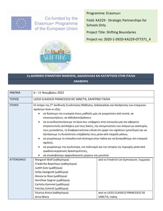 1η ΔΙΕΘΝΙΚΗ ΣΥΝΑΝΤΗΣΗΜΑΘΗΣΗΣ, ΔΙΔΑΣΚΑΛΙΑΣ ΚΑΙ ΚΑΤΑΡΤΙΣΗΣ ΣΤΗΝ ΙΤΑΛΙΑ
