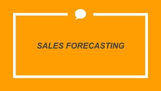 This document discusses sales forecasting. It begins by defining sales forecasting as projecting expected customer demand for products or services under certain assumptions. Forecasting can be used for strategic planning, finance, marketing, and production. The document then lists some principles of forecasting, noting that forecasts are rarely perfect and more accurate for shorter time periods and grouped data. It discusses internal and external factors that can affect forecasts. The rest of the document outlines different types of forecasting methods, including qualitative methods based on judgments and quantitative methods based on mathematical models. It provides examples of various qualitative and quantitative forecasting methods.