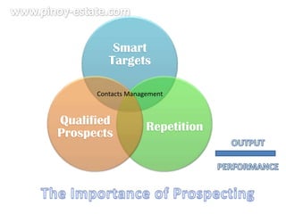 The document focuses on strategies for managing contacts effectively. It emphasizes the importance of qualified repetition in engaging prospects. The content aims to enhance communication and maximize outreach efforts.