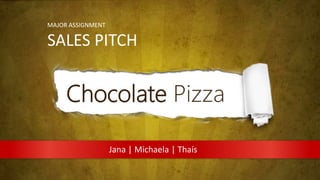 The document outlines a sales pitch for a chocolate pizza business, highlighting the product's unique features, including a classic dough base topped with chocolate. It proposes a loyalty program with a point system and special promotions to engage customers, while also emphasizing the importance of understanding customer preferences through after-sales surveys. Special daily promotions are planned to attract buyers and offer value.