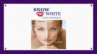 Snow White Teeth Whitening provides at-home teeth whitening services using a 17.5% hydrogen peroxide gel that can whiten teeth by up to 8 shades in just one hour with the gel being applied in a custom mouth tray, and they recommend whitening no more than once every 6 months to avoid sensitivity though results can last from 6 months to 2 years depending on an individual's habits.