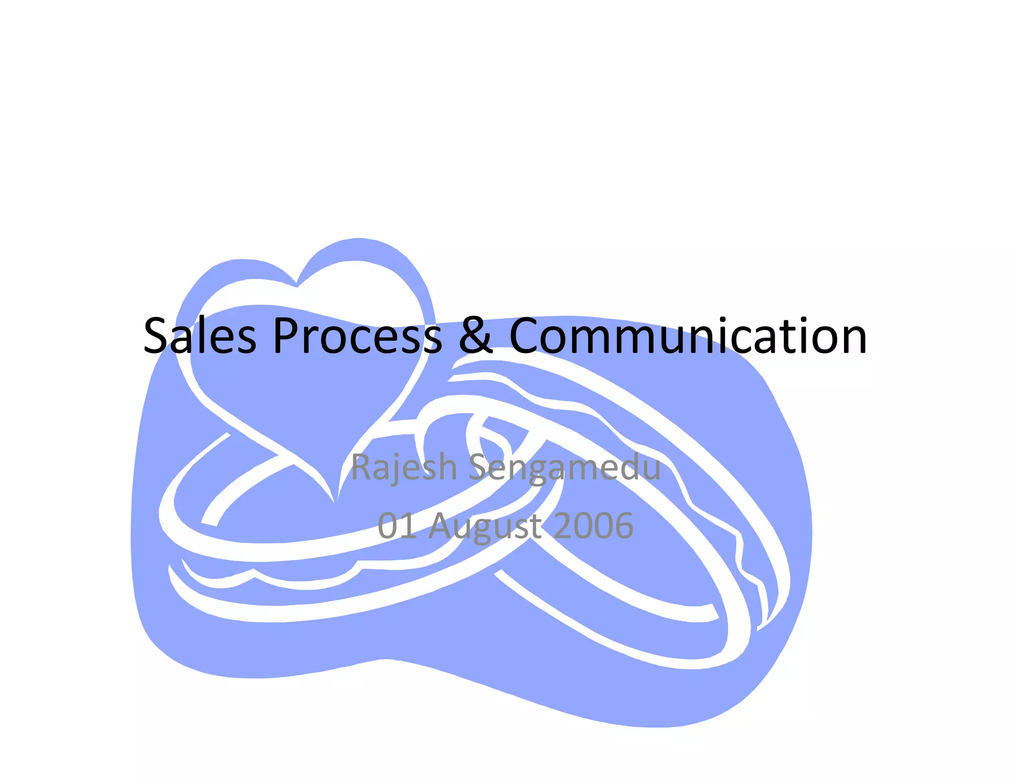 The presentation outlines the essential elements of the sales process, emphasizing the importance of communication and teamwork in winning customers. It discusses the generic sales process (AIDA) and highlights common communication pitfalls that salespeople face, advocating for an 'outside-in' approach to understanding customer needs. Key messages include the necessity of listening, delivering on commitments, and fostering strong relationships to improve sales outcomes.