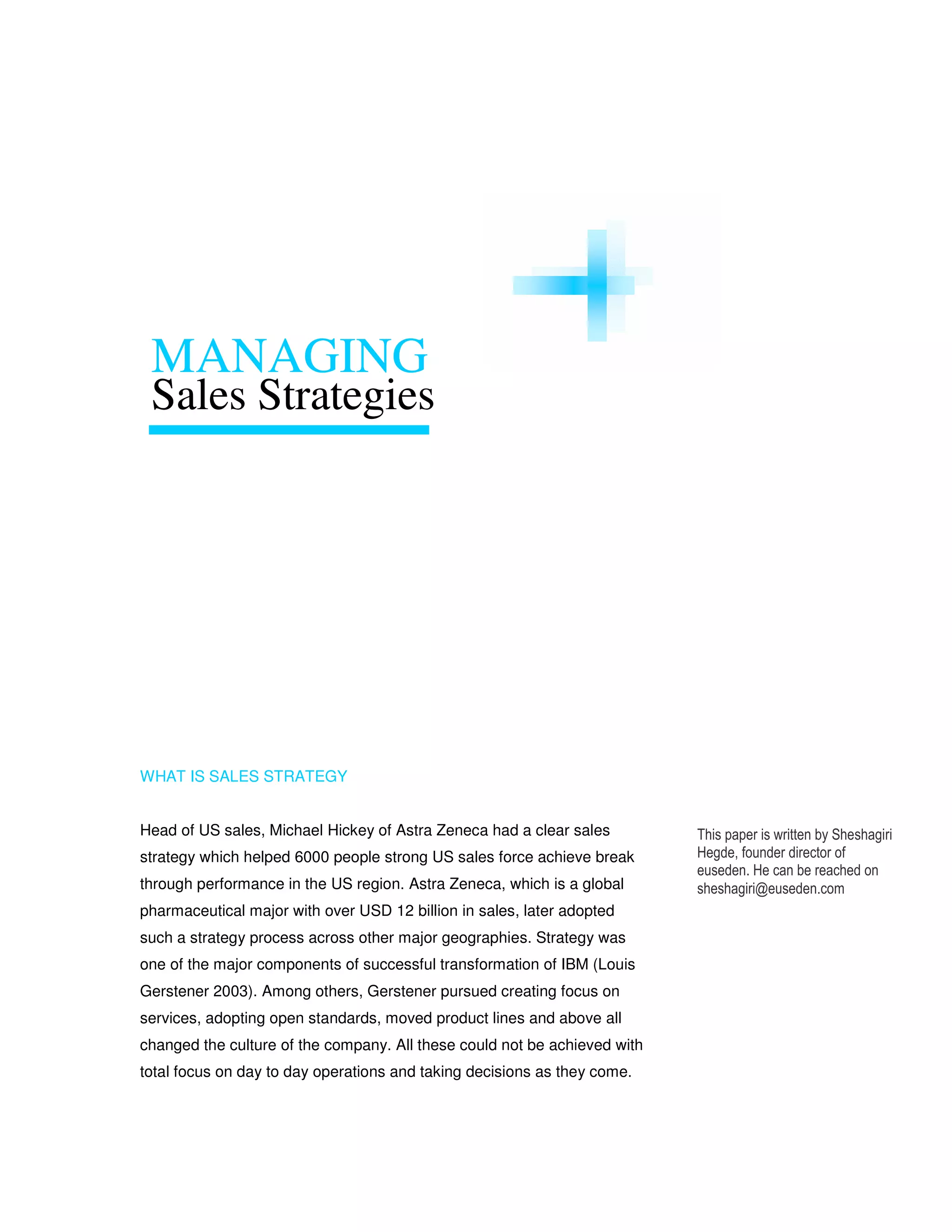 This document discusses the importance of sales strategy and how to effectively implement a sales strategy through a sales scorecard. It provides examples of how AstraZeneca successfully implemented a sales strategy and scorecard that helped achieve breakthrough performance. A key point is that a sales strategy needs to be translated into specific, measurable objectives and tied to performance management in order to properly align the sales force and ensure the strategy is executed. A sales scorecard system linked to objectives across customer, financial, internal process, and learning/growth perspectives can help sales management implement and track performance against the overall sales strategy.