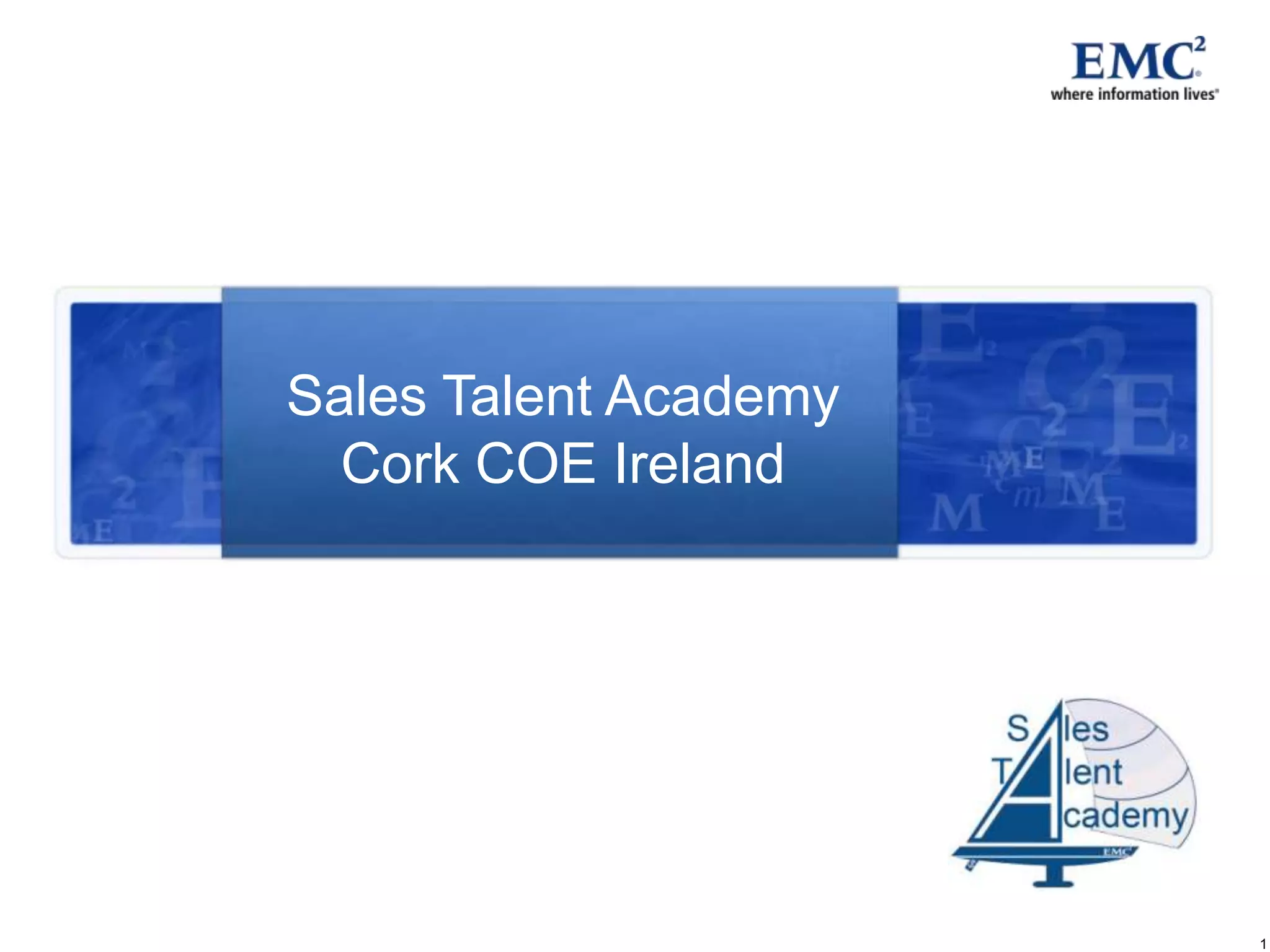 The Sales Talent Academy is an 18-week intensive training program run by EMC in Cork, Ireland that aims to develop young graduates into successful sales representatives. The program provides classroom and on-the-job training over two levels to ingrain participants with EMC's culture and teach sales skills. Graduates who complete the program are placed in sales roles across EMEA. The academy seeks motivated, tech-savvy graduates with some sales experience and provides training, career growth opportunities, and competitive compensation.