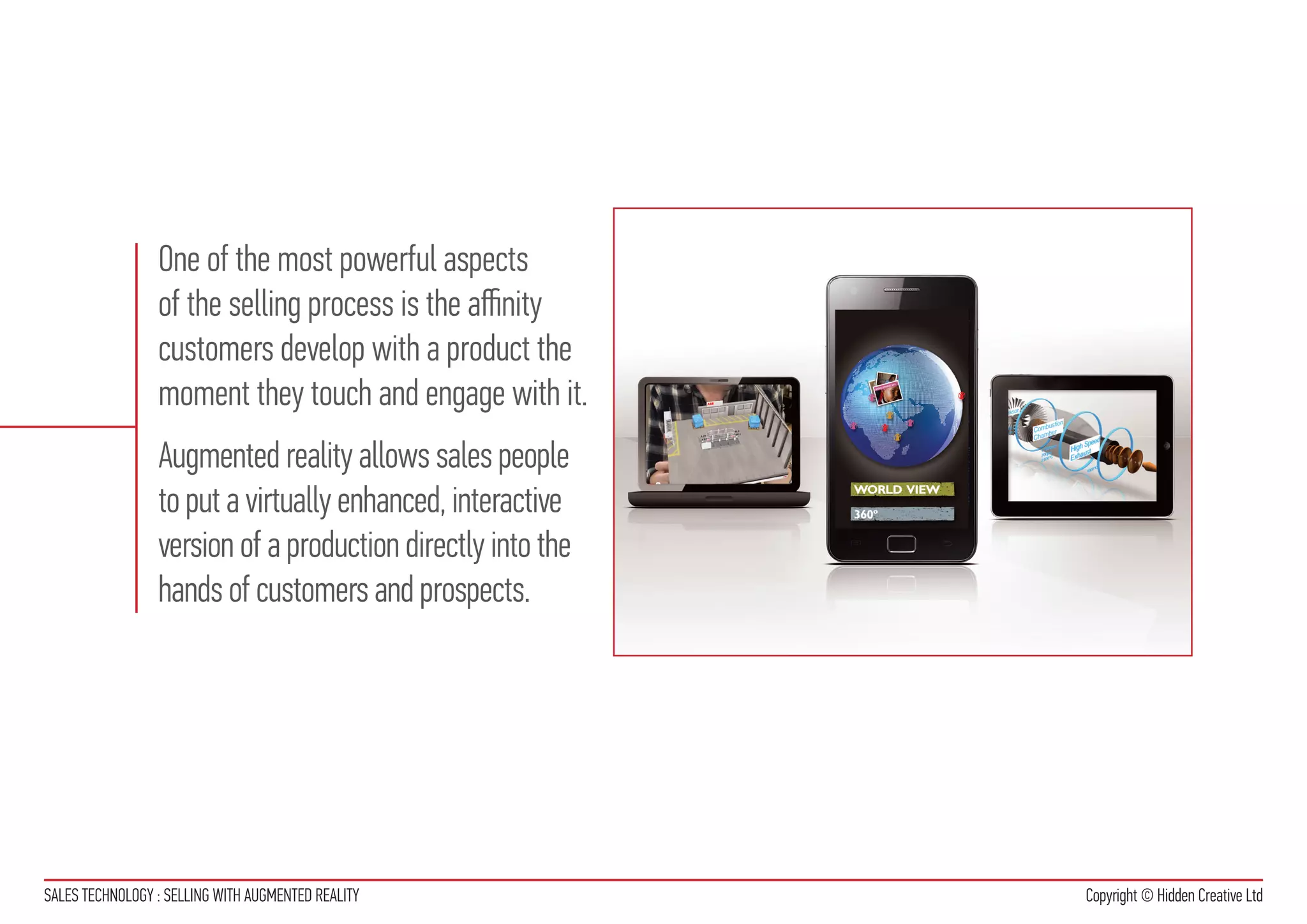 The document discusses the advantages of using augmented reality (AR) in the sales process to enhance customer engagement and understanding of products. It presents research showing that AR experiences significantly increase the likelihood of purchase and perceived value of products compared to traditional advertising. Additionally, AR facilitates better communication with visual and kinaesthetic audiences, supports storytelling in marketing, and aids in lead qualification through user engagement data.