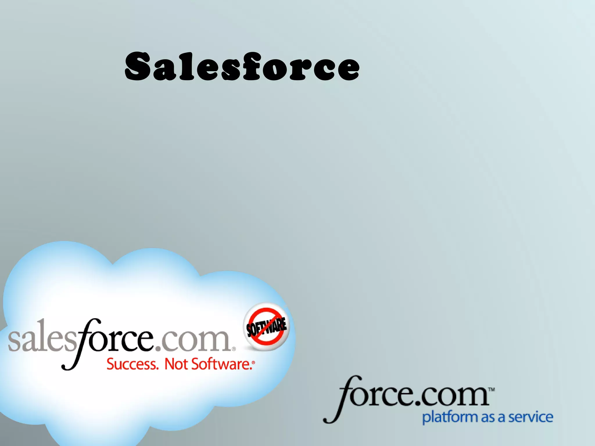 The document provides an overview of Salesforce, including: