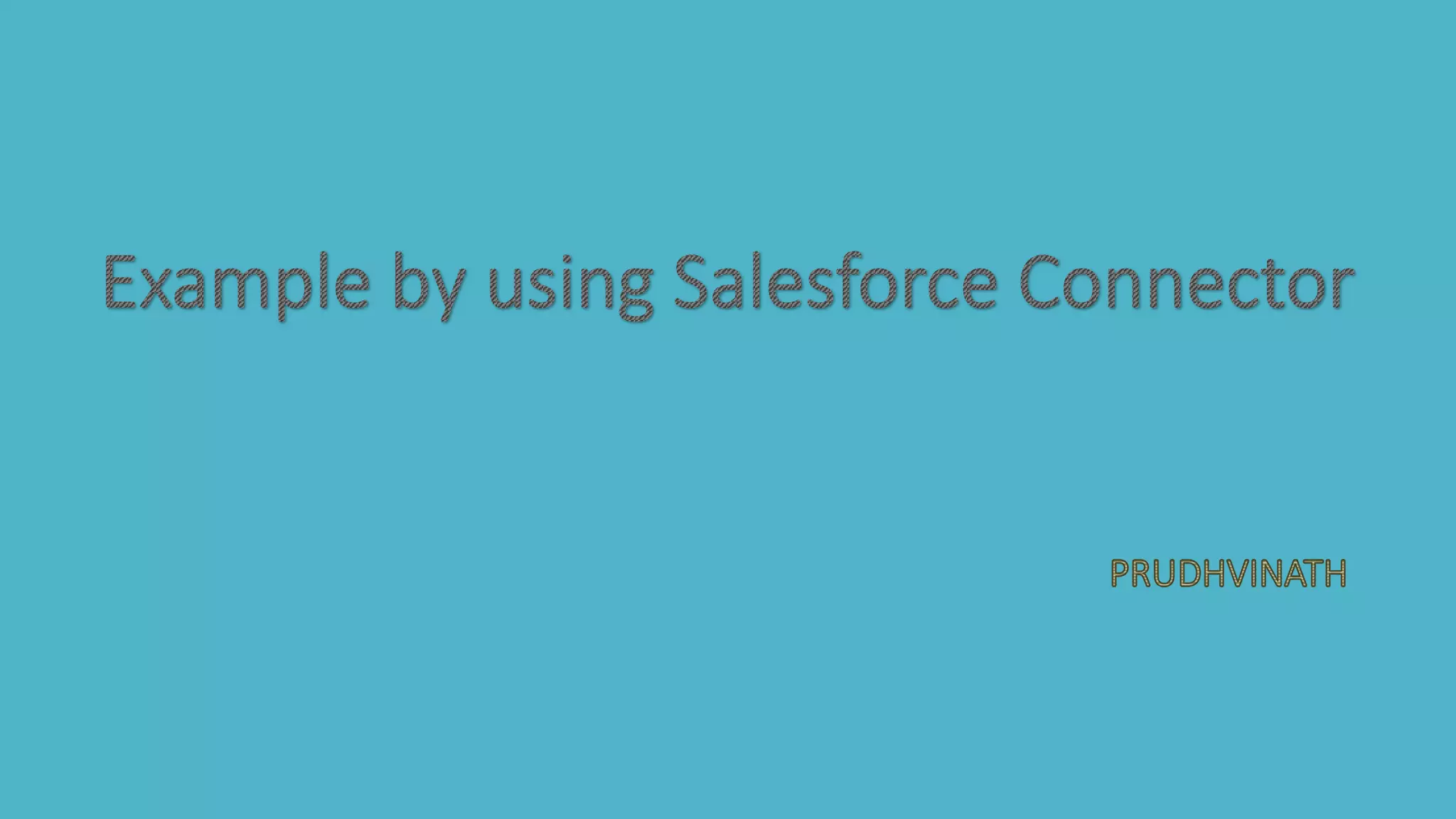 The document describes how to use Mulesoft to connect a CSV file to a Salesforce account. It involves using a File connector to monitor an input folder for CSV files. A Salesforce connector is configured with a username, password and security token. A DataMapper transformer maps the CSV file fields to Salesforce object fields. When run, the application will take CSV contact data from the input folder and upload it to the Salesforce account as new contacts.