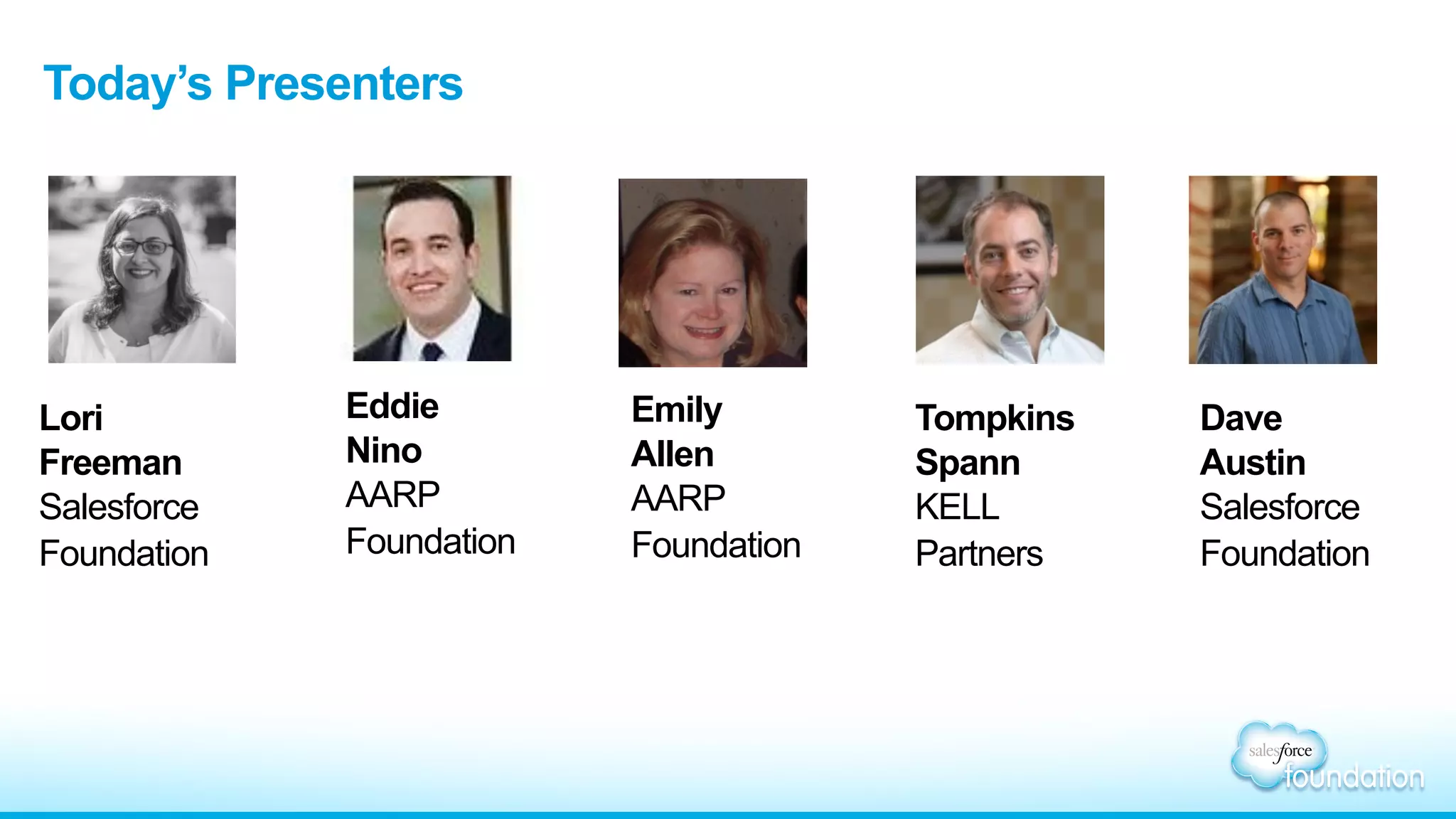 The document discusses the importance of community engagement for nonprofits and how Salesforce can facilitate this through various tools and resources. It emphasizes the need for improved collaboration, data organization, and tracking to better serve community members and achieve organizational goals. Included are insights from AARP Foundation and examples of successful implementations in nonprofit operations.
