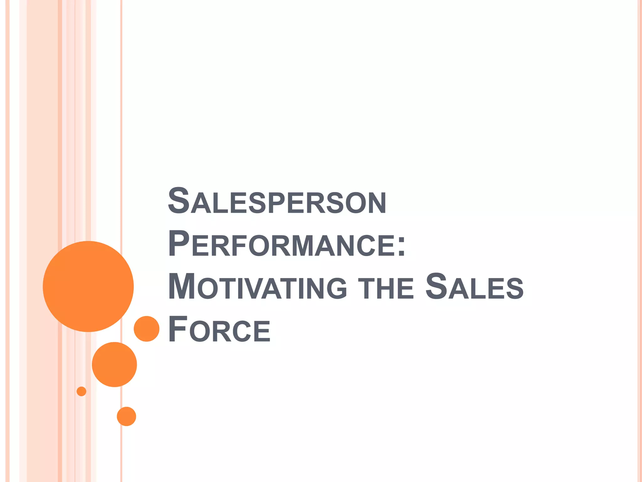 A salesperson's motivation is determined by their expectations, the instrumentality of their actions, and the valence they place on potential outcomes. It is also influenced by personal characteristics, environmental factors, and organizational policies. A salesperson's motivation changes throughout their career as they progress from exploration to establishment to maintenance stages. Organizations can impact motivation through leadership, compensation plans, and managing environmental challenges.