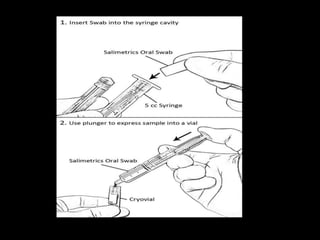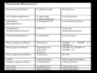 This document provides an overview of a presentation on salivary glands. It discusses the classification, composition, functions, and anatomy of salivary glands. It also covers the formation and collection of saliva, conditions affecting salivation, salivary markers for periodontal diagnosis, roles of salivary enzymes and hormones, and the potential for saliva as a future diagnostic fluid. Biomarkers in saliva are classified and salivary substitutes are briefly mentioned.