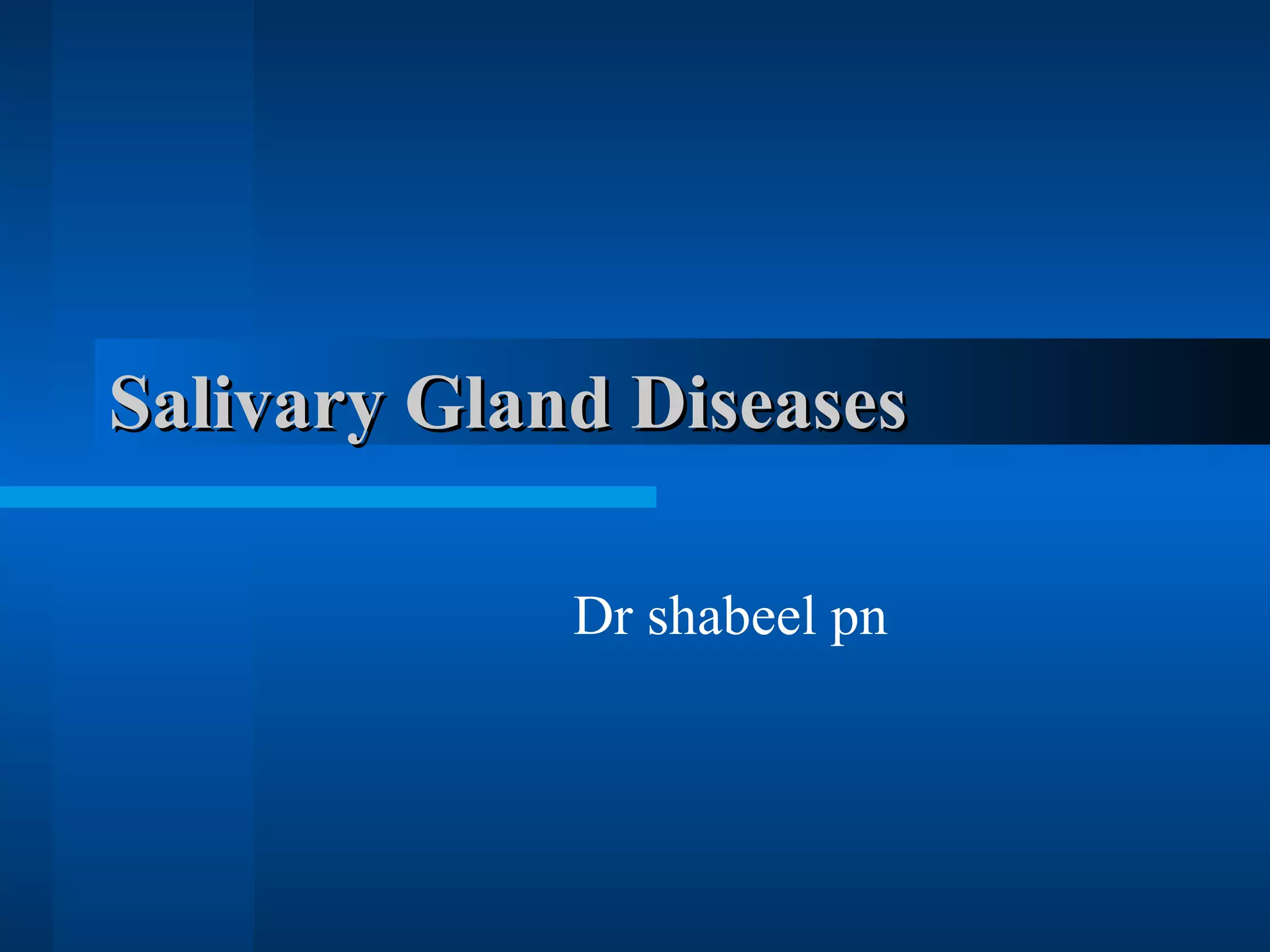 The document discusses various salivary gland diseases including functional disorders like sialorrhea and xerostomia, obstructive disorders like sialolithiasis, non-neoplastic disorders such as acute and chronic sialadenitis, and neoplastic disorders including adenomas, mucoepidermoid tumors, carcinomas, and malignant lymphomas. It also covers sinus diseases such as acute and chronic sinusitis, their causes, symptoms, treatments, and potential complications.