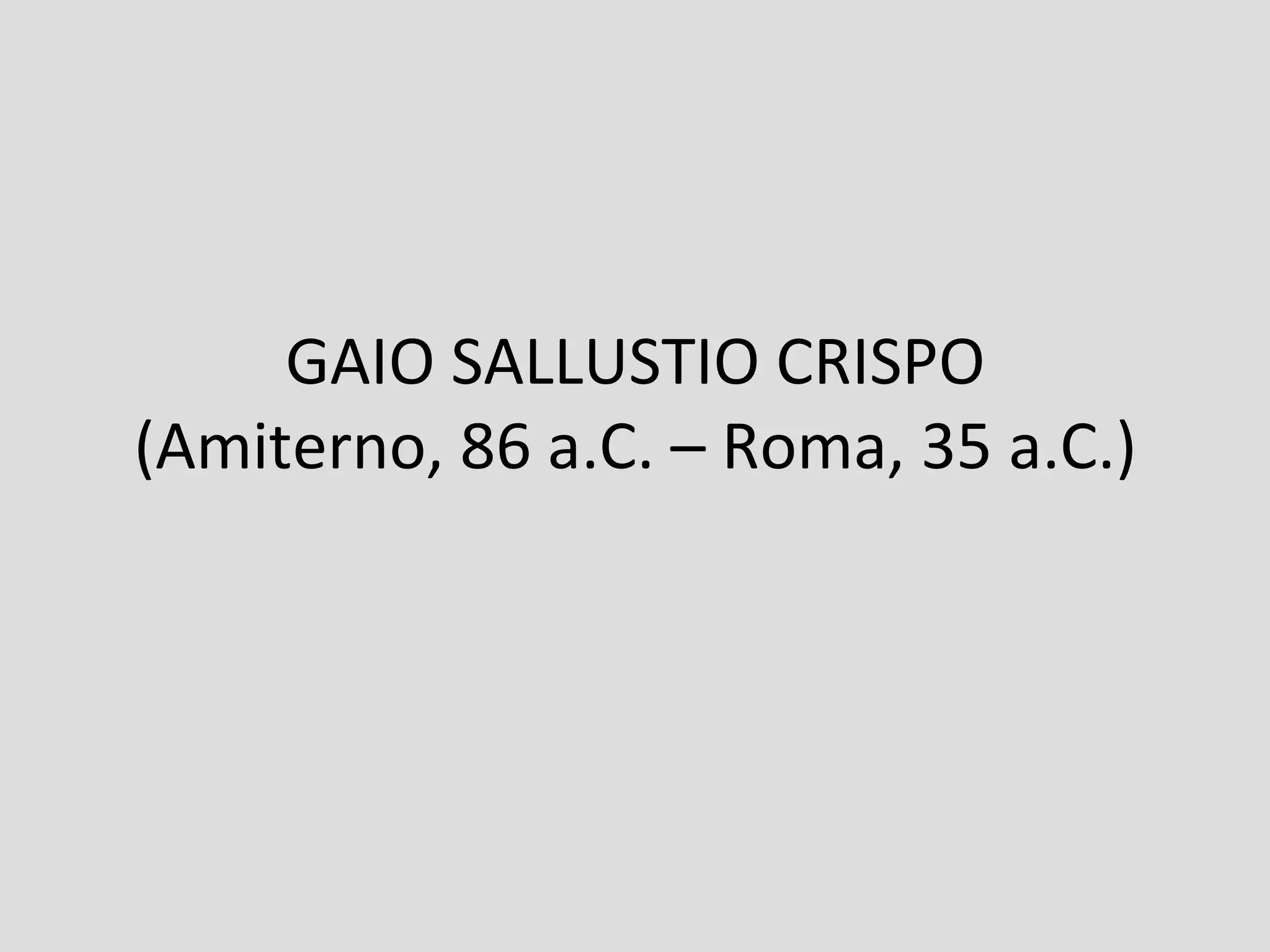 Gaio Sallustio Crispo (86-35 a.C.) è considerato il primo grande storico latino, noto per le sue opere storiografiche sulla congiura di Catilina e sulle guerre contro Giugurta. Le sue opere sono caratterizzate da uno stile denso e arcaico, in cui utilizza una prosa ricca per esprimere la sua visione critica della decadenza morale di Roma. Sallustio si distingue per il suo approccio unico alla narrativa storica, influenzato da figure come Catone e Tucidide.