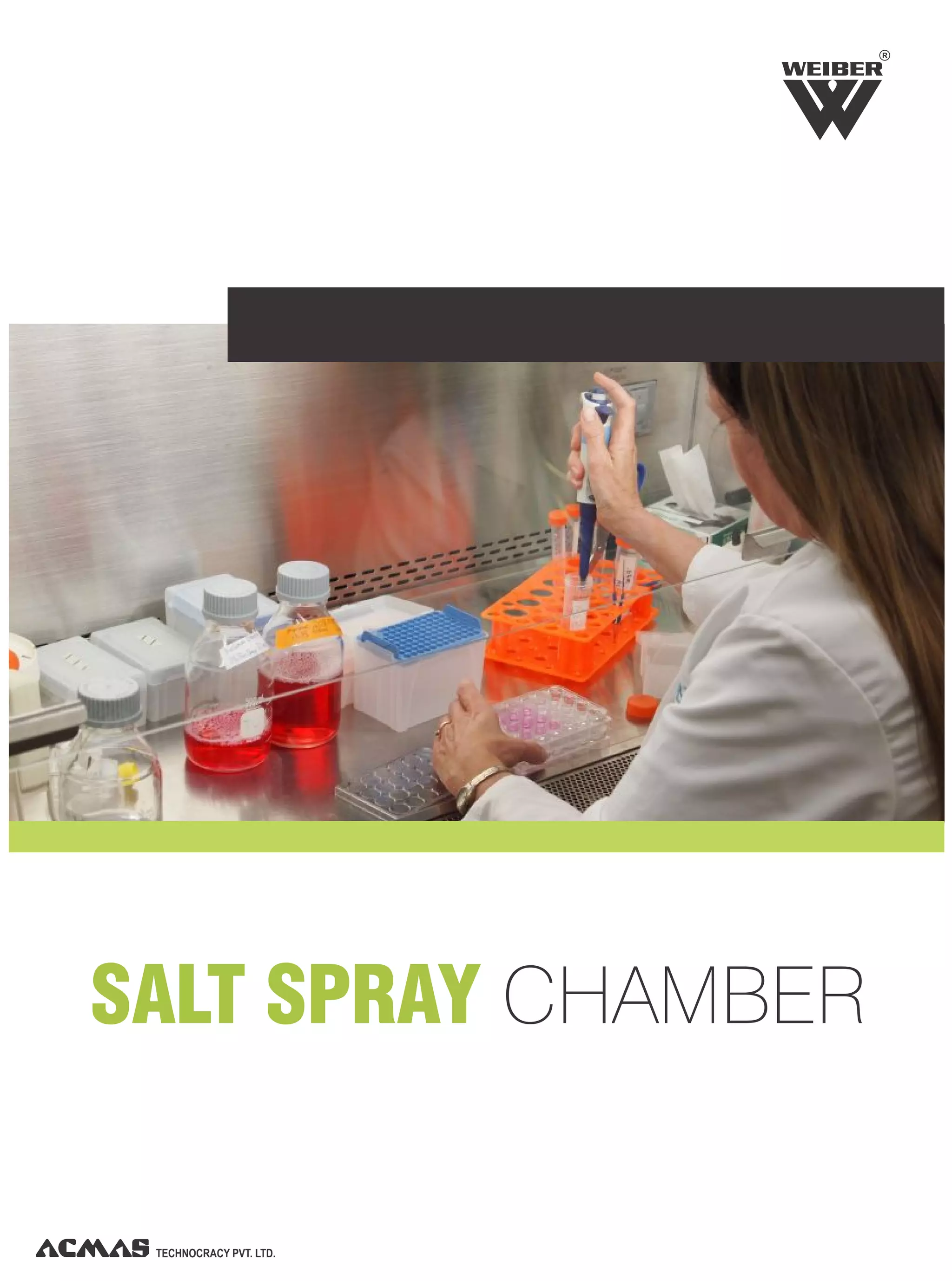 The document describes the features and specifications of the salt spray chamber manufactured by Technocracy Pvt. Ltd., which tests the corrosion resistance of materials through various protective treatments. It includes details about its automatic water refilling system, integrated control instruments, and use of high-quality materials for construction, ensuring safety and precision during operation. Additionally, the document outlines data acquisition capabilities for environmental monitoring and compliance with international standards.