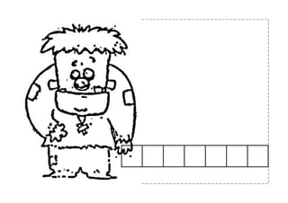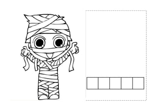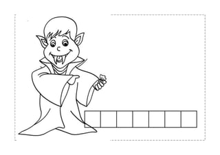 The document appears to be a Halloween-themed worksheet for children of different ages. It includes words related to Halloween like witch, ghost, castle, monster, bat, mummy, and vampire. It asks questions about the different characters and has sections for coloring, cutting out, and completing speech bubbles for children ages 3 to 5.