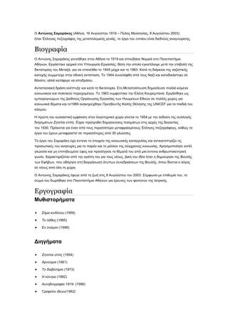 Ο Αντώνης Σαμαράκης γεννήθηκε στην Αθήνα το 1919 και σπούδασε Νομικά στο Πανεπιστήμιο