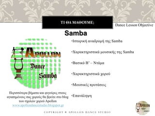 Η διασκέδαση με τον χορό του καρναβαλιού και της σαμπάνιας, συνεχίζεται... Μάθετε τώρα τον επόμενο βηματισμό στην Samba, Βασικό Β', για τις ντάμες και ελάτε να διασκεδάσουμε μαζί στα Εβδομαδιαία, Θεματικά Χορευτικά μας πάρτυ!