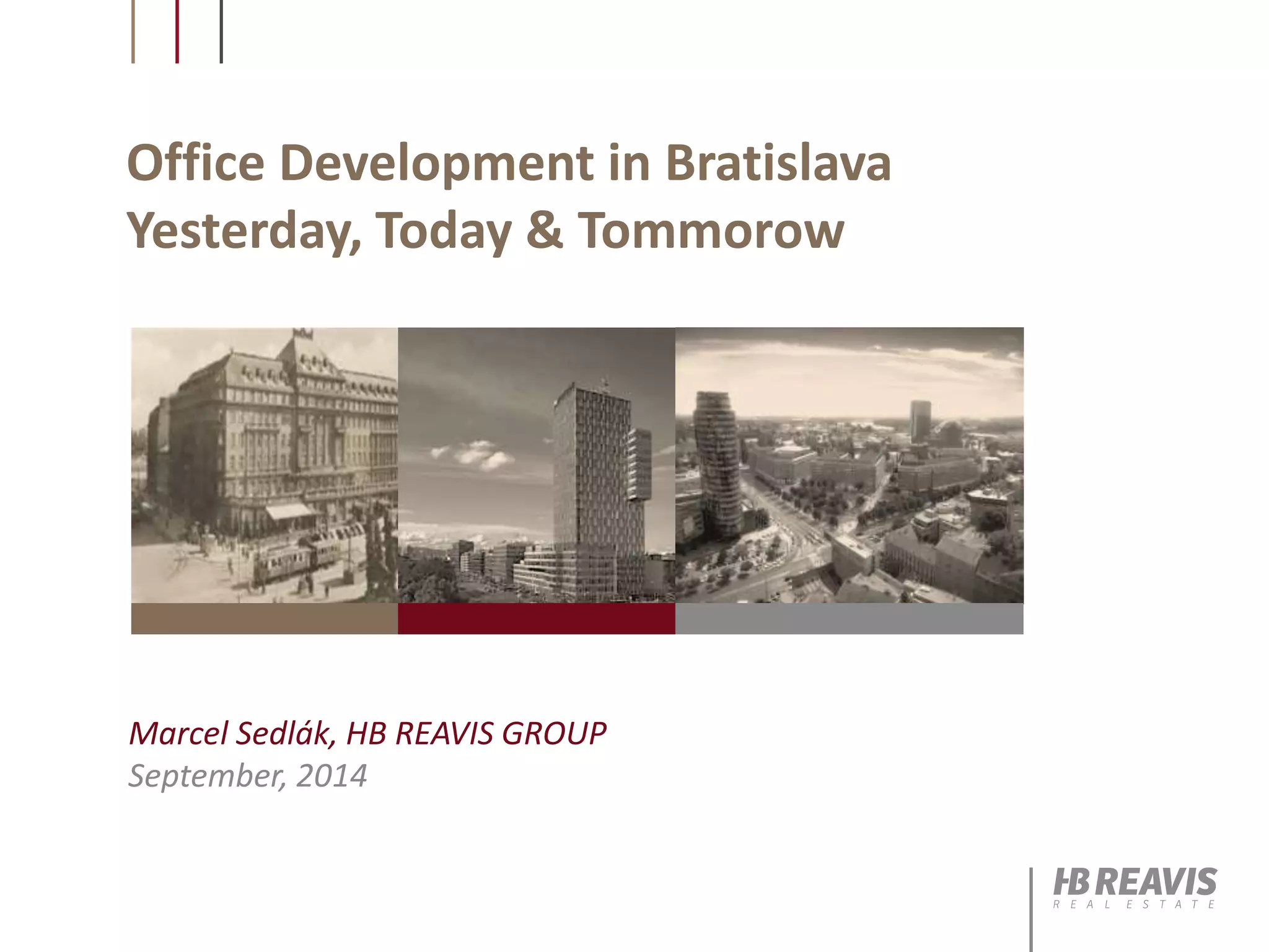 This document summarizes the development of the office market in Bratislava, Slovakia from 1989 to the present. It discusses how the market started with refurbishments and built-to-suit developments due to the lack of modern commercial space after political changes in 1989. Two pioneering speculative office projects from 1997-1999 and 2003-2006 demonstrated the potential for non-prelease development and helped establish the real estate development industry. The current Bratislava office market is analyzed in comparison to other European cities, with total stock of 1.5 million sqm and a vacancy rate of 13%. Looking ahead, the document forecasts continued development of around 80,000 sqm of new office space annually, with a stronger focus on