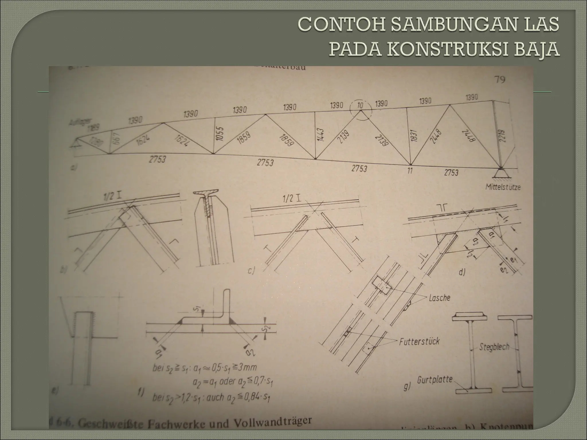 Dokumen ini membahas sambungan las, termasuk metode, keunggulan, kekurangan, serta klasifikasi kualitas sambungan yang berbeda. Kualitas sambungan ditentukan oleh berbagai faktor, dan dimensi sambungan beragam tergantung pada jenis dan beban yang diterima. Contoh aplikasi sambungan las ditampilkan dengan analisis kekuatan pada sambungan yang digunakan untuk mereparasi dudukan bantalan poros.