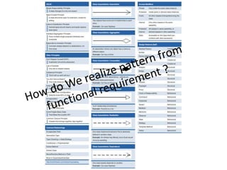 The document discusses software architecture and design patterns. It begins by describing the author's confusion with their code and lists objectives like understanding how to implement patterns and architectural relationships. It then defines concepts like object-oriented programming, design patterns, and software architecture. The remainder discusses filling gaps between architecture and design, perceived understanding versus guidelines, and examples of applying minimal viable products, layering, and design patterns like GOF patterns to a banking system.