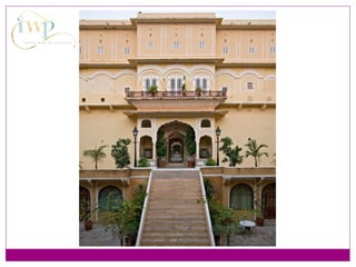 Samode Palace in Jaipur, the capital of Rajasthan, is a luxurious heritage hotel known for its rich cultural history and Indo-Saracenic architecture. The palace offers 42 elegantly furnished rooms and suites, exceptional dining experiences, a spa, and various activities for guests, including horse and camel safaris. It provides a unique blend of royal hospitality and modern amenities, making it a perfect getaway for discerning travelers.