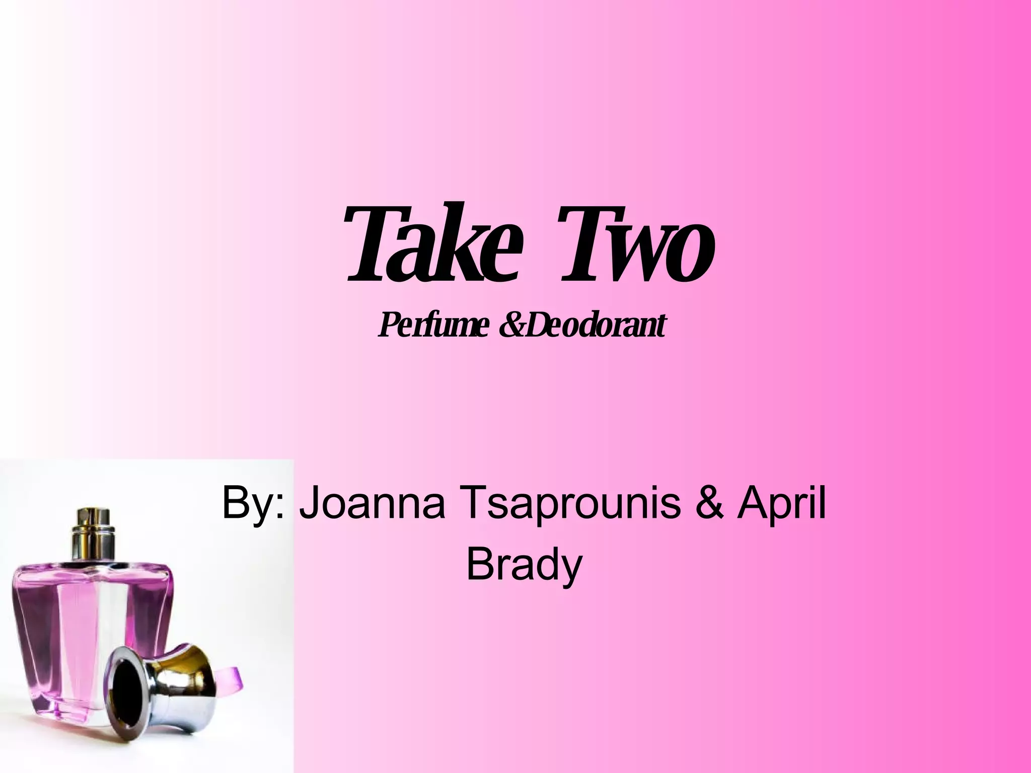 Take Two is a perfume and deodorant duo that provides the scent of perfume with the functionality of deodorant. It is aimed at young girls aged 14-25 and busy, image-conscious women. Market research found that the majority would buy such a product, prefer tropical scents in a glass bottle, and would pay $5-10 for deodorant or $70-100 for perfume. Take Two will be priced at $15, and marketed through television advertising featuring celebrities during comedy shows, as well as radio, magazines, and department stores, to target consumers' preferences uncovered in the primary research.
