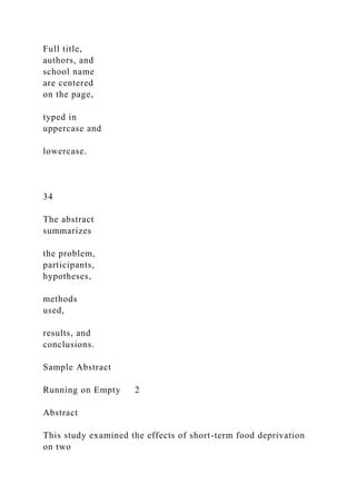 The study examined how short-term food deprivation impacts concentration and perseverance in undergraduate students. Although no significant effect was found on concentration, participants experiencing 12 hours of food deprivation performed worse on a perseverance task compared to control and 24-hour groups. The findings suggest that while concentration remains largely unaffected by short-term fasting, perseverance may decline after certain periods of food deprivation.