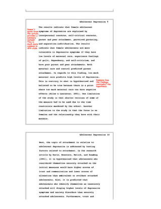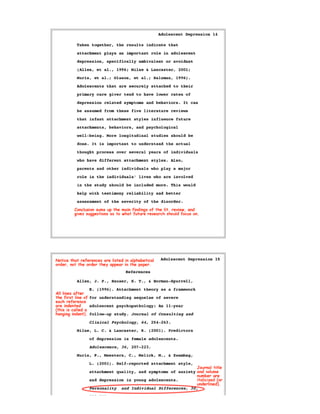 This document provides a sample literature review from an undergraduate psychology student. The review is marked up with comments from psychology teachers on its format, content, and adherence to APA style. It serves as an example of a student paper for others to reference. The document also provides information on copyright and contacting the organization that produced the sample review.