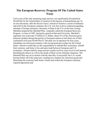 The document discusses the complexities involved in writing essays that convey the essence of speeches, emphasizing the need for a balance between creativity and structure. It also touches upon the historical context of the European Recovery Program and the distinctions between the state and government, as well as exploring various topics such as medieval castles and Egyptian funerary practices. Additionally, it highlights challenges faced by rural healthcare systems, the Marine Corps' career retention processes, and the evolving perceptions of esports.