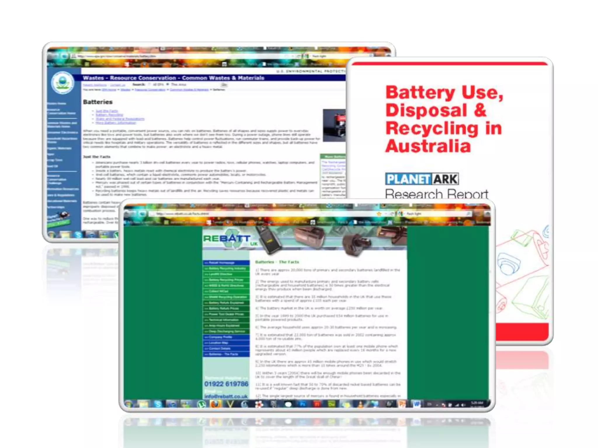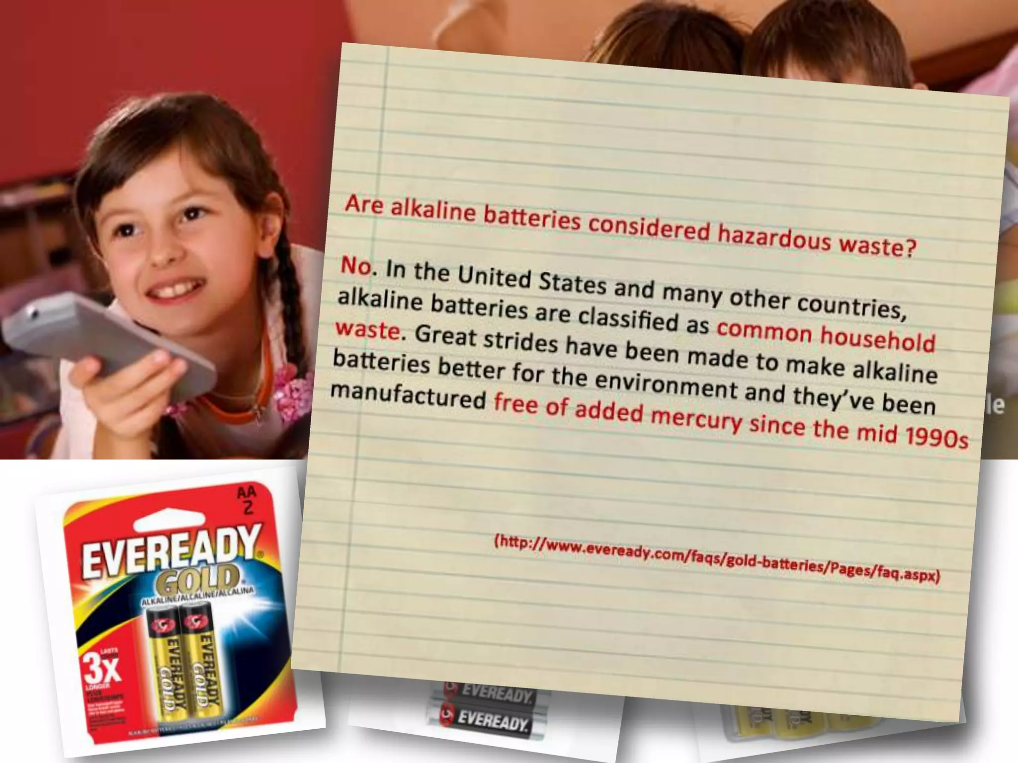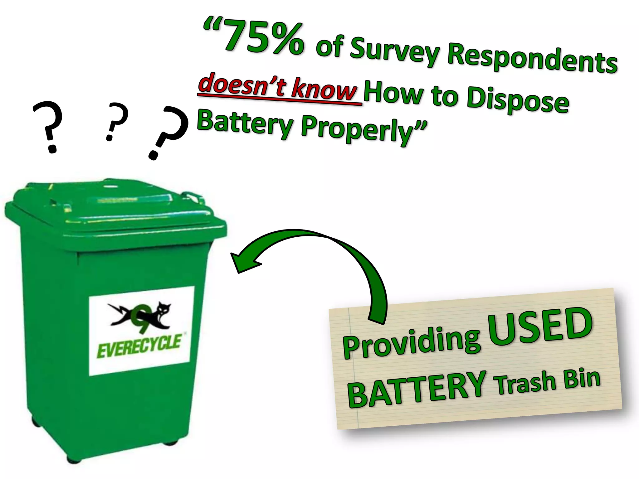 Household batteries contain chemicals like potassium hydroxide that can cause respiratory, skin, and eye irritation. Nickel-cadmium batteries contain cadmium which can lead to osteoporosis, liver damage, and kidney failure. The US consumes 3 billion batteries per year, but 2/3 of battery waste ends up in landfills and can poison water supplies. A survey found that 80% of respondents buy household batteries but 91% dispose of them in normal trash bins, though 96% believe battery recycling is important.