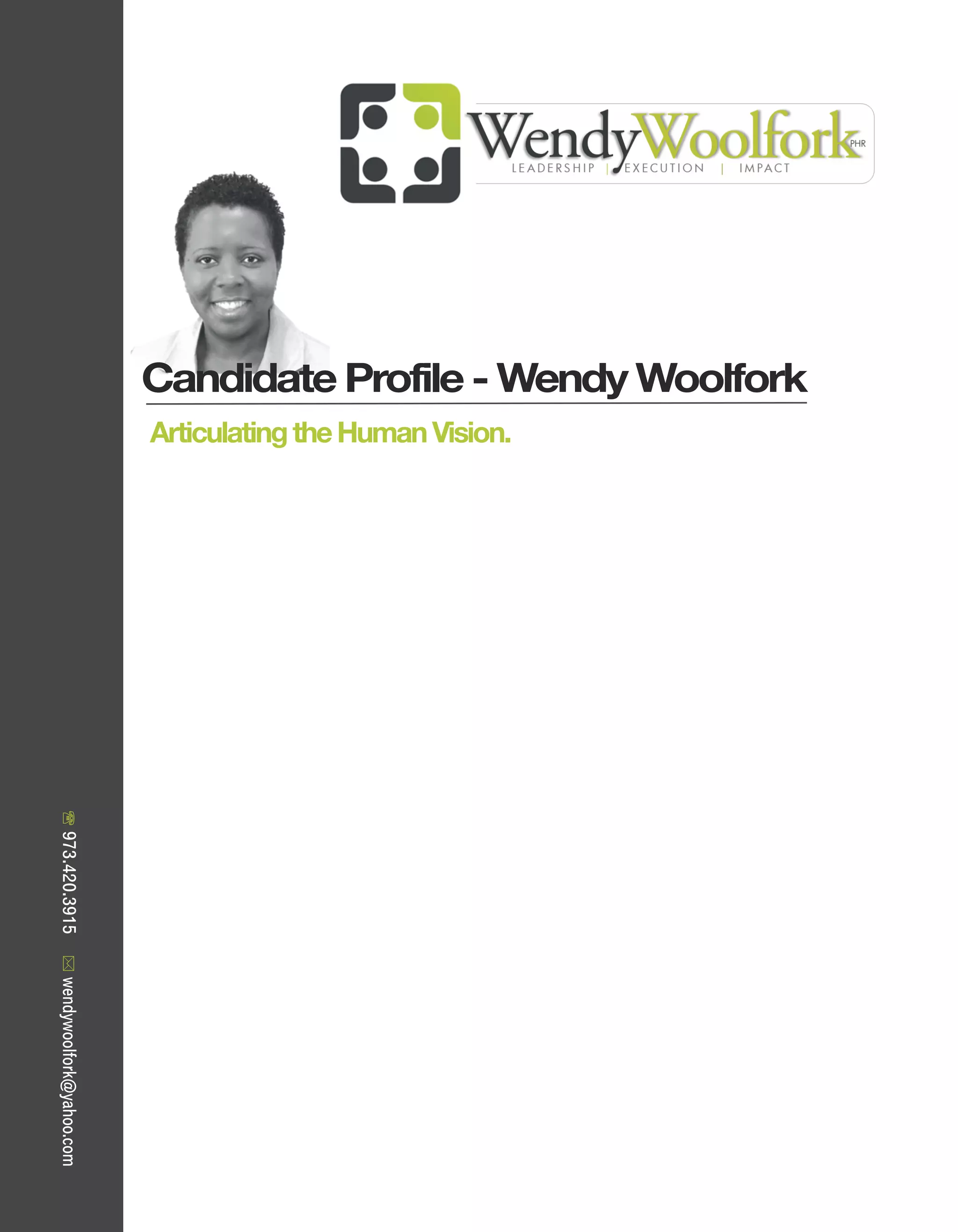 Wendy Woolfork is an experienced human resources executive with a track record of developing and implementing strategic HR processes. She is skilled at needs analysis, building consensus, and resolving conflicts. Woolfork is recognized as a visionary thinker who can align HR projects with business goals. She is an influential leader and motivator who has delivered extraordinary results when building corporate culture and high-performing teams. Woolfork is also a confident communicator who has successfully identified leadership weaknesses and coached behavioral change at all levels of an organization.