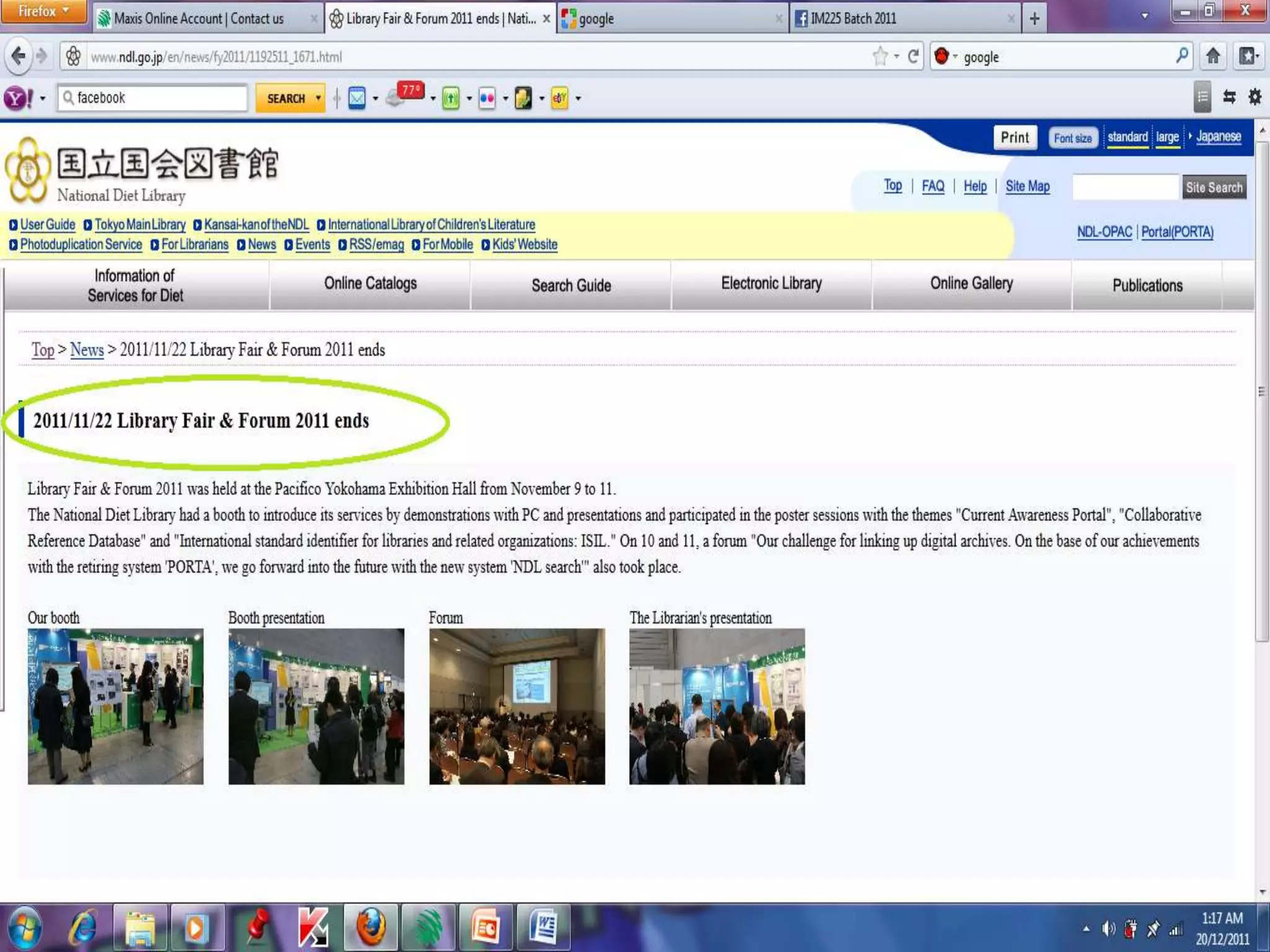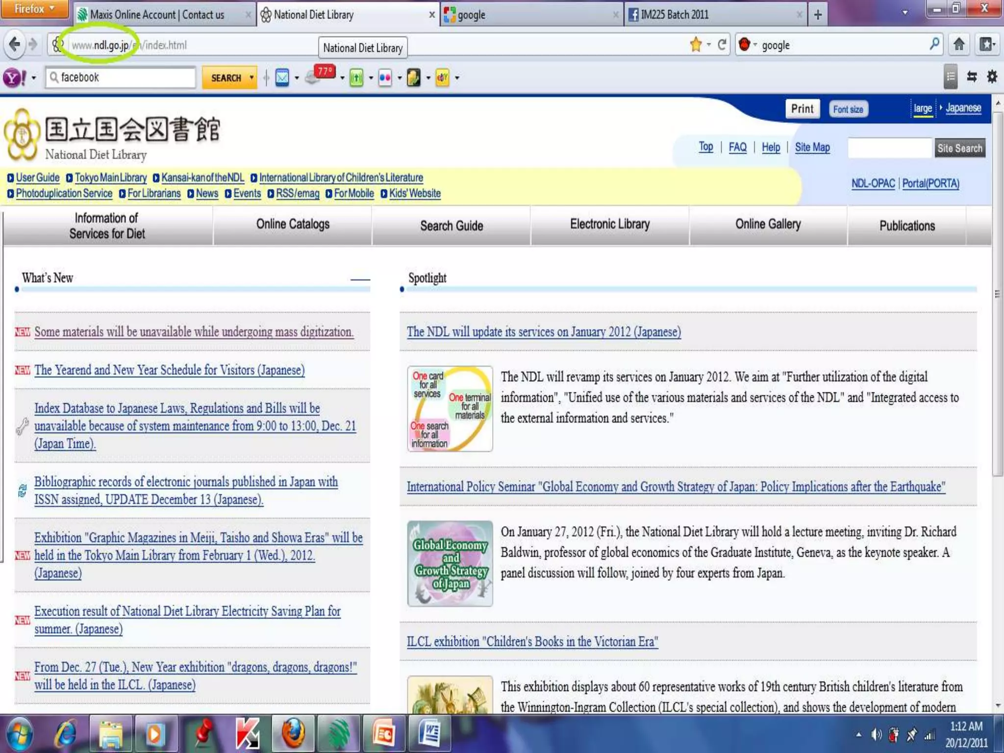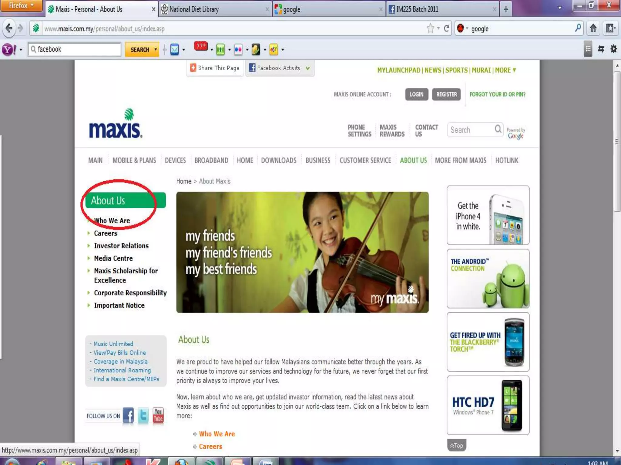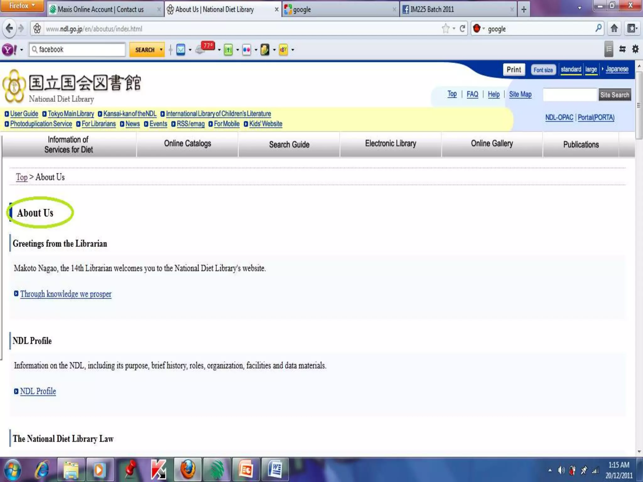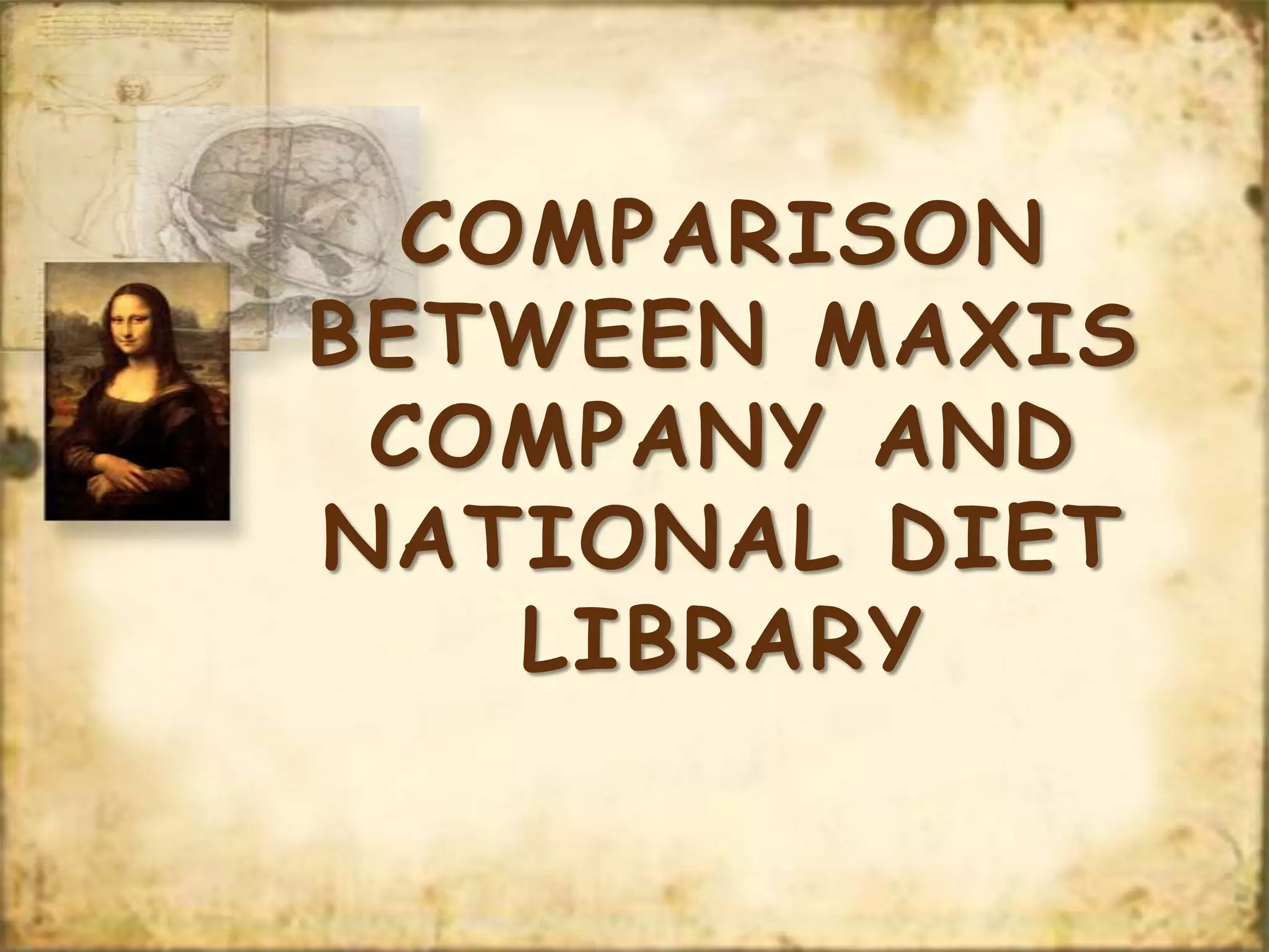 The document compares the websites of Maxis and the National Diet Library across several criteria. Maxis' website is well-organized with up-to-date information and a cheerful design. It provides customer service links and information about new communication products. However, it uses a lot of graphics. The National Diet Library's website contains accurate, up-to-date information but is poorly organized with a crowded page layout and difficult language. The conclusion is that Maxis' website is better due to its easy navigation, interesting writing style and properly arranged content.