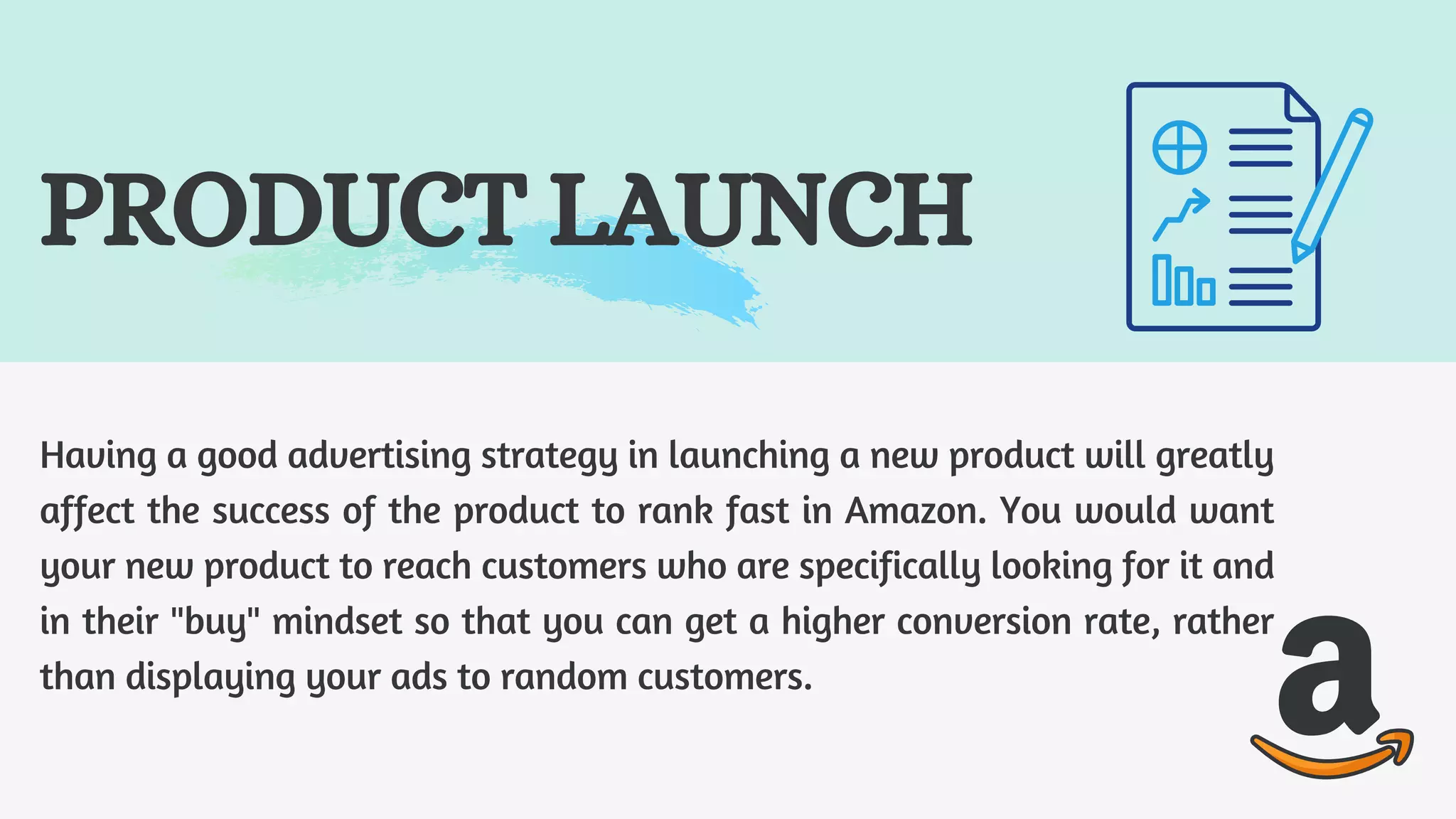 The document outlines an effective PPC strategy for launching a new product on Amazon, emphasizing the importance of targeting customers who are in a 'buy' mindset. It recommends starting with a manual campaign using relevant keywords to build initial reviews and ratings, while being prepared for higher spending than profit in early weeks. Once enough social proof is established, shifting to an auto campaign can help widen the audience and improve conversion rates.