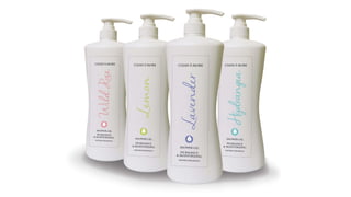该文档是关于为cxm holdings sdn. bhd. 提供的洁净和自然香皂的产品包装设计提案。它介绍了多种香皂的自然香料和色彩图案,以及每种香皂背后的花语和象征意义。提案强调了产品的ph平衡和保湿特性,以及与自然和美相关的设计风格。