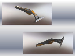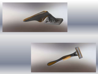 The document describes 3D models created in Solidworks including a disposable razor, hydraulic actuator for oil and gas industries, and a pneumatic shock absorber. It also mentions a servo proportional valve manifold block that was made for a client to automate a 335 ton punch press.