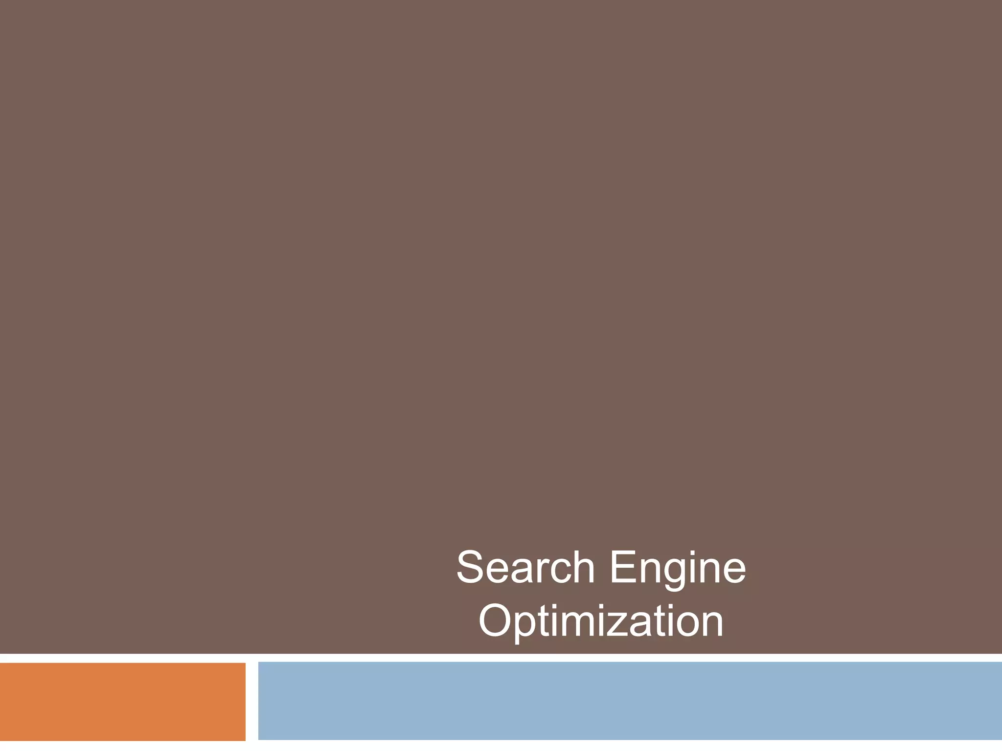 The document discusses search engine optimization (SEO) and outlines a proposed SEO program. The objectives of SEO are to increase a website's visibility, traffic, and number of visitors. The proposed 6-stage program includes evaluation, on-page optimization, off-page activities like link building, and monitoring rankings and traffic over at least one year. Key deliverables include analysis, recommendations, and reports tracking the program's implementation and results.