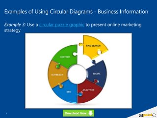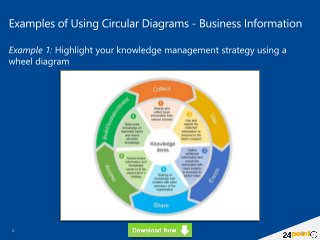 Make presentations interesting by presenting data and information on geometric diagrams instead of using the regular text based slides. One can use circular diagrams or wheel diagrams to present business concepts, strategies and ideas in an interesting way.
