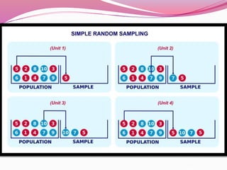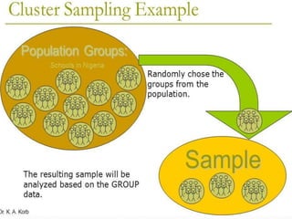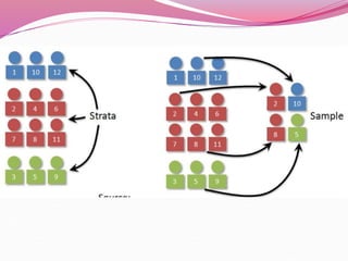 The document discusses various sampling methods used in epidemiological studies, emphasizing the importance of obtaining a representative sample from a population. It distinguishes between probability sampling, where each individual has an equal chance of selection, and non-probability sampling, which may introduce bias. Key sampling techniques include simple random, systematic random, stratified random, cluster, and multistage sampling, each with its advantages and disadvantages.