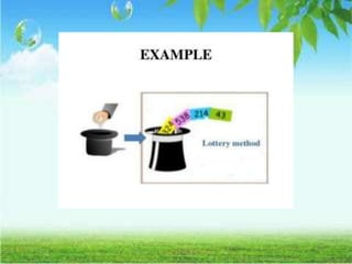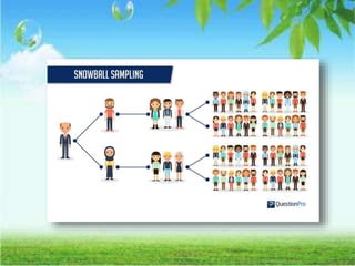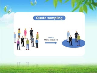 The document discusses the concept and importance of sampling in research, defining key terms such as population, sample, and types of sampling methods. It categorizes sampling techniques into probability and non-probability methods, detailing various approaches such as simple random sampling, stratified sampling, and convenience sampling among others. The document highlights the advantages and disadvantages of each technique, emphasizing the implications for data quality, bias, and representation of the population.