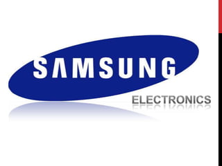 The document provides information about Samsung, including its founding, history, vision, and marketing strategies. It was founded in 1938 by Lee Byung-chul as a trading company and expanded into electronics. Samsung Electronics was established in 1969 and has since grown to be a global leader in consumer electronics through innovation, strategic pricing and distribution, and emphasis on understanding customer needs. The company aims to develop new technologies that enrich people's lives.