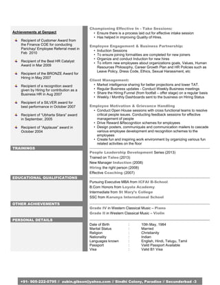 Samuel Christopher Gibson is a human resource specialist with over 10 years of experience working for multinational firms like E.I. DuPont Services Center India and Genpact. He has expertise in talent acquisition, talent management, onboarding, performance management, and implementing HR policies and processes. At his current role at DuPont, Gibson manages a team of 3 and is recognized as the backbone of the Hyderabad Service Centre hiring. He has consistently received awards for his contributions and achievements in hiring, implementation of talent management systems, and reducing time to hire. Gibson holds a B.Com Honors degree and is pursuing an Executive MBA.
