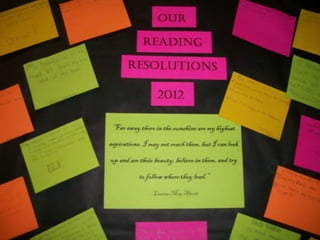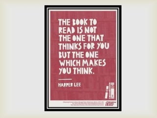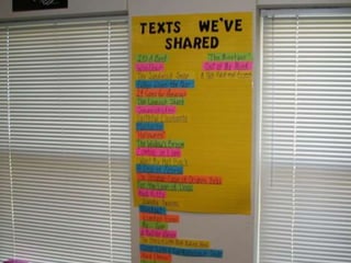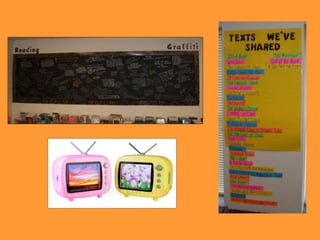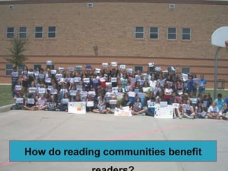 The document outlines strategies for enhancing reading engagement among students, emphasizing the importance of reading aloud, selecting appropriate literature, and building reading communities. It discusses the benefits of read-alouds in developing skills, community building, and exposing students to various genres. Additionally, it provides recommendations for fostering a love of reading through teacher-student interactions, resources, and community involvement.