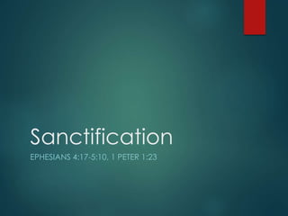Sanctification is the process of becoming holy through both divine and human efforts, emphasizing separation from evil and dedication to God. It involves giving up sins such as jealousy and lying, and is crucial for spiritual growth and being a blessing to others. To live a holy life, one should be obedient to the Holy Spirit, engage in regular spiritual practices, and seek God's forgiveness when we stumble.