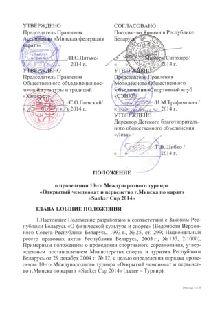 Отсканированное положение о Sanker Cup 2014 с подписями и печатями.